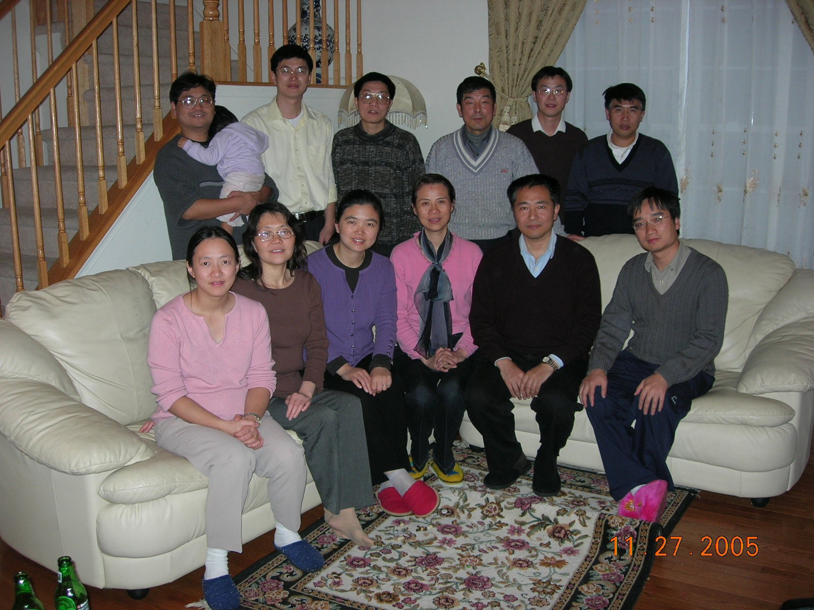 Front row, from left: Changhui Yang (Chemistry,'85), Zhiling Li (Medical College, '80), Jianmei Fu (Economics, '89); Back row, from left: Xuming Xie (Math, '87--faculty), Huiming Xue (Physics, '83), Qingbei Zeng (Food Sci, '88-faculty), Jianliang Zou (Medical School, '75), Bin Zheng (Chemistry, '88--faculty), and Zhenrong Guo (Chemistry, '77).